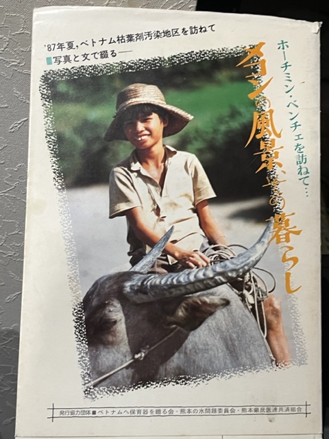 7月8日の夜、熊本市の水前寺共済会館にて2月27日に亡くなられたルポライターの北岡さんを偲ぶ集いに参加した。その遺品(出版物・写真)展示の中に私に関係あるのが一冊だけあった。それは1987年にベトナム枯葉剤汚染地帯を訪問した時の本『メコンの風景、その暮らし』(日越友好協会熊本県支部準備会)の中にあるルポルタージュ・ベトナム「祖国」再生への模索・・を北岡さんが書いている。その文章の四・二重体児ベト・ドクの章のある33p、その写真は私のものを使った。(この本は私が編集人だったので、本の題名や表紙の水牛に乗る少年も私の撮影したものを採用した(^_-))・・そこでの北岡さんの文章と写真の共同作業はこちら。