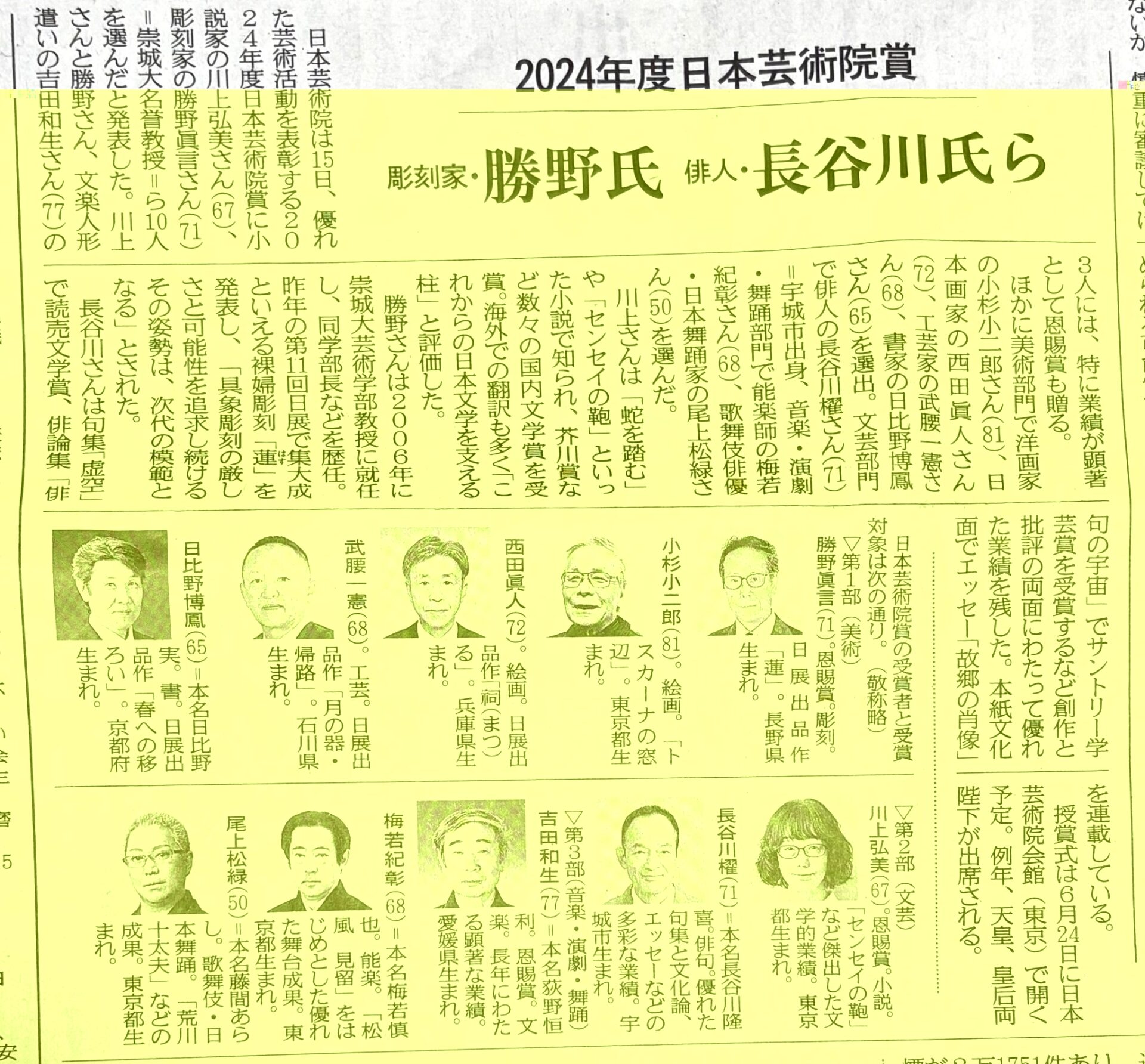 櫂さんが日本芸術院賞を受賞 おめでとう!
